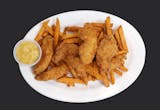 Zucchini sticks dipped in an egg mixture with bread crumbs, parmesan cheese, baking powder, & salt, fried until golden brown.