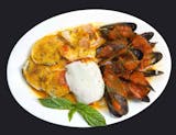 Baked clams, shrimp, mussels, and eggplant rollatini.