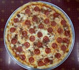 Pepperoni, sausage, mushrooms, peppers, chicken.